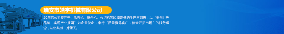 瑞安市皓宇機(jī)械有限公司是瑞安一家私營(yíng)責(zé)任有限公司,注冊(cè)資金200萬(wàn),員工40余人,是具有獨(dú)立法人地位,專業(yè)生產(chǎn)定做各種非標(biāo)準(zhǔn)涂布機(jī)、復(fù)合機(jī)、印刷機(jī)、分切機(jī)、壓膜機(jī)等機(jī)械設(shè)備的制造廠。公司的機(jī)器主要用于生產(chǎn)保護(hù)膜、膠帶、雙面膠、不干膠、相紙、油畫(huà)布、汽車防爆膜、熱轉(zhuǎn)印、燙金膜、離型膜、離型紙、軟包裝印刷、軟包裝復(fù)合、軟包裝分切等各種產(chǎn)品... [詳細(xì)]
